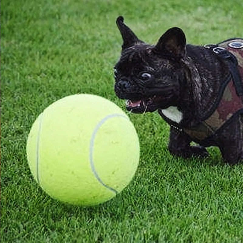This Jumbo Ball is 9.5 inches BIG!! It’s thicker than any normal tennis ball, so it’s made to last! Your furbaby is sure to get LOTS of use out of it!