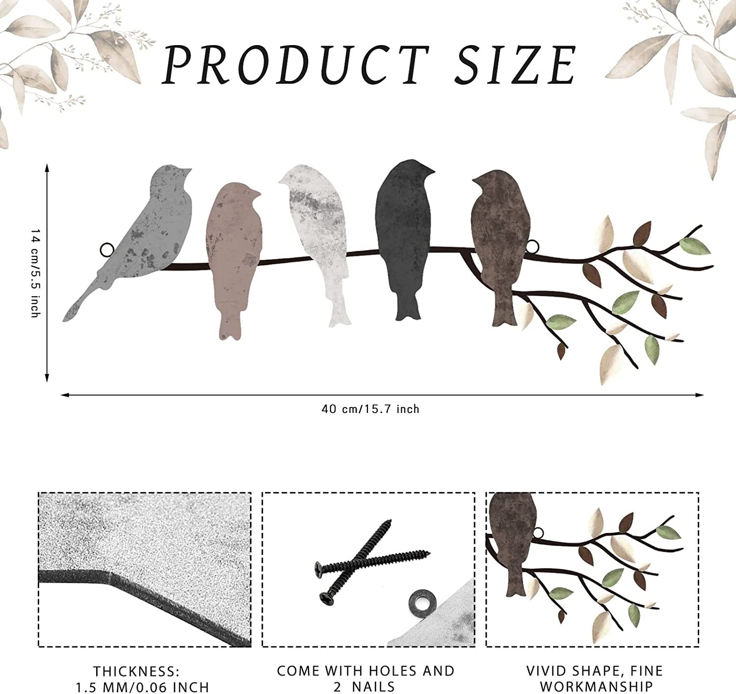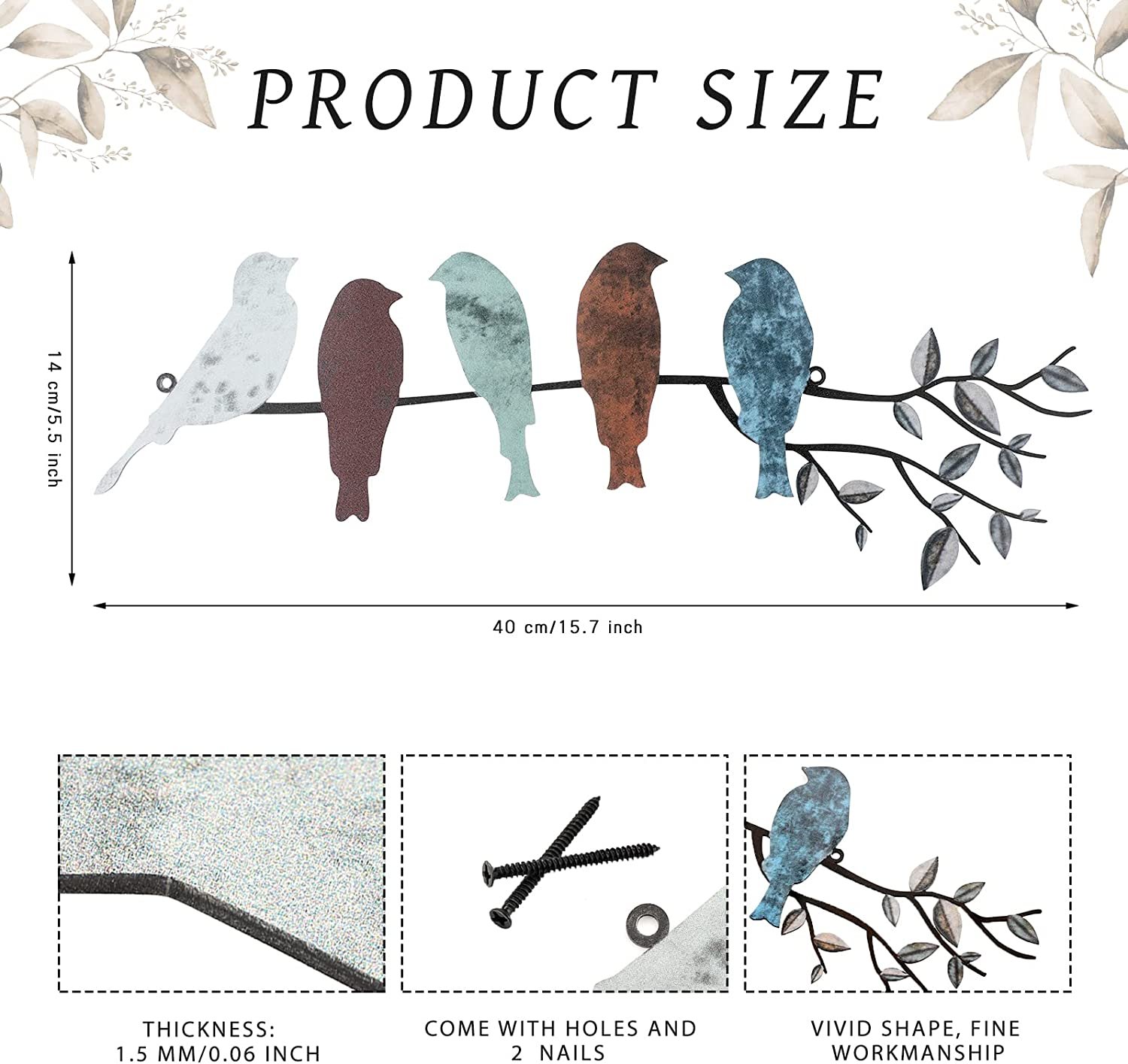 • Sturdy material: the leaves with birds wall decor is made of lightweight black painted metal, not easy to break or get corroded, not fade and have no bad smell, serviceable and reliable, also its sides and edges touch smoothly without burrs or sawdust, which can be applied for a long time